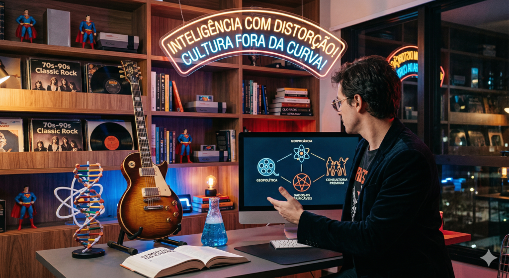 A proposta deste espaço é subverter o óbvio. Em um mundo saturado de conteúdos superficiais, operamos na frequência da Inteligência com Distorção: unimos o rigor científico e o peso cultural à energia vibrante do Rock and Roll e da Cultura Pop. Aqui, a curiosidade não é apenas bem-vinda; ela é o combustível para uma jornada Fora da Curva.